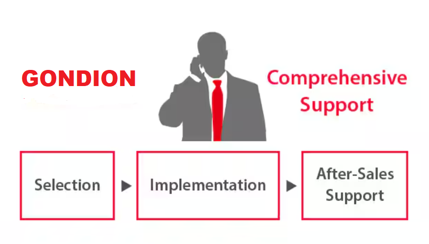 Gondion utilizes rich on-site manufacturing and automation knowledge to provide support to customers. This includes comprehensive support from selection to online operation (providing on-site operation guidance and precautions after adopting the product).